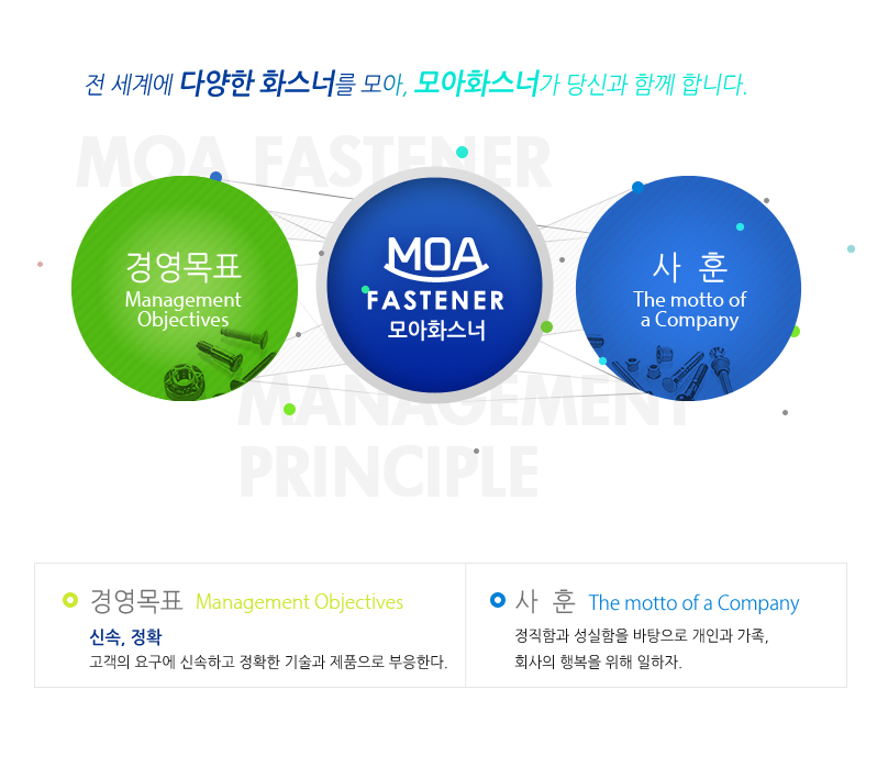 모아화스너가 추구하는 전 직원의 목표입니다.