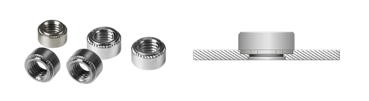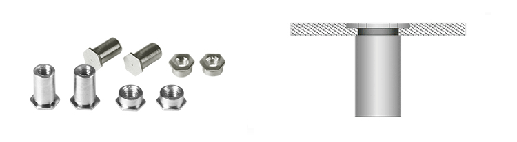 제품소개얇은 박판의 모재에 클린칭 제품인 압입볼트나 압입너트 또는 스탠드오프를 프레스로 눌러서 압입하는 타입으로, 제품의 작업 안정성과 원가절감 효과가 크게 향상되는 제품이다.