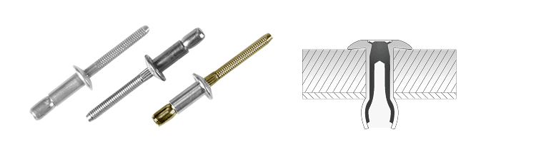 블라인드리벳보다 더 강한 체결력과 진동 및 충격에 강함이 필요할 때 사용 가능하다.